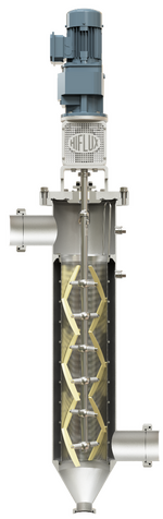 Die Abreinigung des Filtereinsatzes erfolgt automatisch und der Filtrationsprozeß wird nicht unterbrochen. Bevor sich ein Filterkuchen an der Innenseite des Filtereinsatzes bildet, werden die zurückgehaltenen Partikel durch einen Abstreifer aus Kunststoff nach unten abgereinigt. Der Abstreifer, oder auch Schaber, kann pneumatisch oder elektrisch angetrieben werden. Bei einem pneumatischen Antrieb handelt es sich um einen Pneumatikzylinder oder einen pneumatisch angetrieben Motor. Bei einem elektrischen Antrieb handelt es sich um einen Getriebemotor.